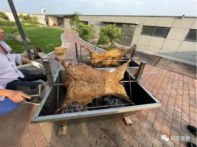 吸管妞給大家?guī)?lái)今天的重頭戲——烤全羊!循著香味找到了烤全羊的位置所在,到達(dá)時(shí),這兩只肥美的小羊已經(jīng)滋滋冒油,色澤金黃,饞得吸管妞那是口水直流啊!