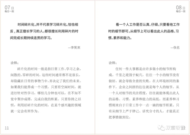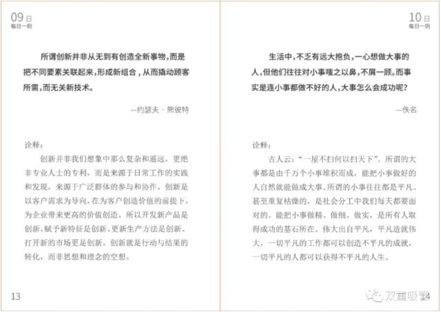 好啦!相信大家看完2021版《每日一則》的序言,一定還覺得意猶未盡,吸管妞接下來會(huì)不定期和粉絲們分享2021版《每日一則》內(nèi)容!大家不要忘了到留言處發(fā)表對(duì)于《每日一則》的感想。留言的粉絲添加吸管妞的微信即可9.9包郵購入一本2021版《每日一則》!大家趕快行動(dòng)吧!