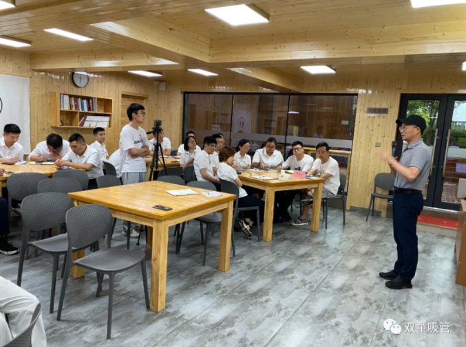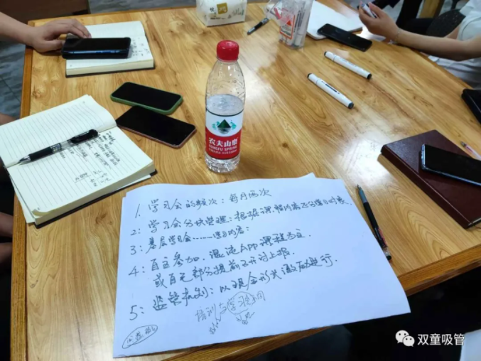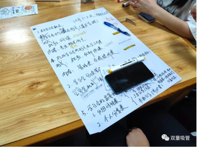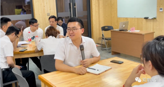 樓仲平的分享,引發(fā)了大家的共鳴和一致認(rèn)可。因此,雙童的小伙伴們針對(duì)五個(gè)提問(wèn),分組對(duì)學(xué)習(xí)會(huì)機(jī)制進(jìn)行了分析討論(自營(yíng)體長(zhǎng)組,生產(chǎn)中高層組,品管研發(fā)組,行政組,銷售人員組)。