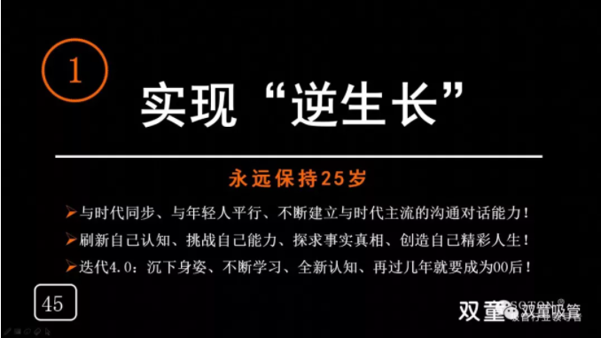 無論你是創(chuàng)業(yè)者還是企業(yè)經(jīng)營者,隨著年齡的增長,知識技能會逐步退化、認(rèn)知能力會逐漸老化!但我們可以通過學(xué)習(xí)迭代實現(xiàn)“逆生長”。讓我們一起保持一顆年輕的心,持續(xù)學(xué)習(xí),保持激情,迭代進(jìn)步,與時代同步吧!