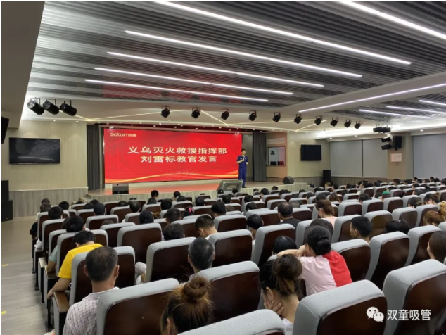 2021年6月是全國第20個“生產(chǎn)安全月”,同時也是雙童的“生產(chǎn)安全月”。雙童一直致力于排查安全隱患和宣傳安全知識,確保每一位員工都能認(rèn)知到安全生產(chǎn)的重要性,切實提高“雙童”全體員工消防安全意識和消防應(yīng)急技能。6月9日、10日,“雙童”特邀義烏市滅火救援指揮部作戰(zhàn)指揮中心劉雷標(biāo)教官到場宣講消防安全生產(chǎn)知識。