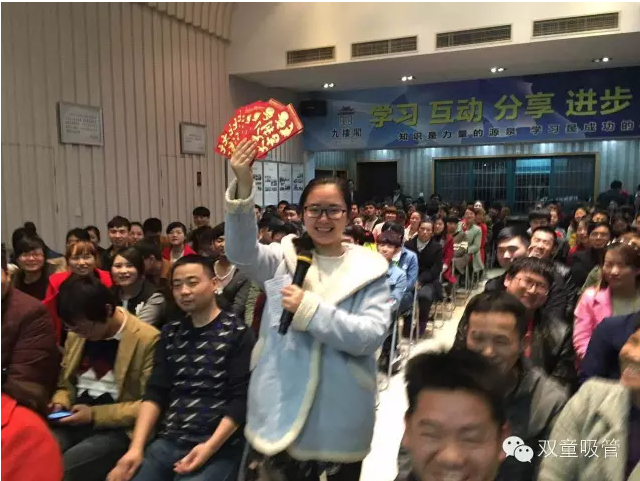 2015年開工后的首次學(xué)習(xí)會,也是第56期學(xué)習(xí)會,吸管妞將紅包搬進(jìn)了學(xué)習(xí)會課堂。也是這一年的春節(jié),微信紅包開始走紅,“雙童”的當(dāng)家人樓總也把微信紅包帶入課堂,大家通過微信互動學(xué)習(xí),微信紅包也更加方便講師和大家的激勵與互動。