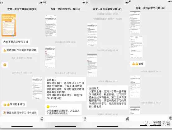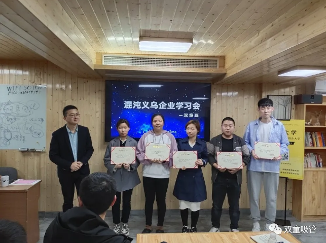 2021年4月1日,“雙童”攜手混沌大學(xué)義烏中心,共同創(chuàng)建了員工學(xué)習(xí)會新形式讓150位行政員工全部上大學(xué)。作為團(tuán)報(bào)企業(yè),混沌義烏會組建線上學(xué)習(xí)群,每月會在群內(nèi)發(fā)布學(xué)習(xí)任務(wù),督促同學(xué)們學(xué)習(xí)打卡,并和企業(yè)學(xué)習(xí)領(lǐng)導(dǎo)小組負(fù)責(zé)人共同評選出優(yōu)秀作業(yè),并給予學(xué)分獎勵。