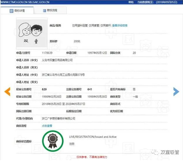 客觀上講,我們的“雙童”商標在使用和推廣過程中是得人于先機的,畢竟它已經(jīng)被行業(yè)內(nèi)所有企業(yè)使用了十多年,后來我們在注冊臺灣“雙童”商標時考證了該商標的來歷,弄清了它的來龍去脈。該商標先是在70年代后期被臺灣企業(yè)所有,該包裝的產(chǎn)品出口到香港等地,由于香港與廣東有著密切的產(chǎn)業(yè)聯(lián)系,到八十年代之后,廣東的吸管生產(chǎn)企業(yè)也相繼使用了該商標圖案作為吸管產(chǎn)品的包裝標記。但在這漫長的過程中竟然沒有一家企業(yè)想著去把她作為商標注冊!由于有了這么一段歷史的淵源,使得我們在后來的品牌推廣上事半功倍,一下就在吸管行業(yè)內(nèi)奠定了品牌地位,使我們生產(chǎn)的產(chǎn)品和品牌被廣泛認同。