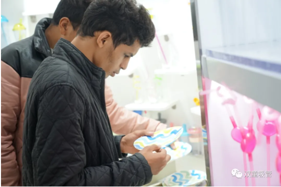 其中,在參觀創(chuàng)新吸管產(chǎn)品體驗區(qū)時,動物造型的卡通吸管、內(nèi)嵌風(fēng)輪會不停旋轉(zhuǎn)的風(fēng)車吸管、眼鏡吸管、小鳥吸管、party吸管……琳瑯滿目、形態(tài)各異的吸管產(chǎn)品讓中外師生們的驚嘆聲此起彼伏,紛紛表示如果不是親所見,很難想象一根吸管竟有這樣的創(chuàng)造力,“雙童”簡直是中國版“Google” !