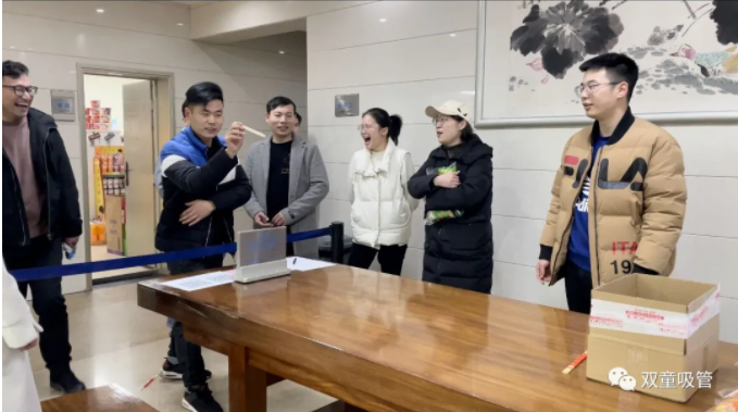 零食大禮包可沒(méi)有這么好拿哦!吸管妞還為大家準(zhǔn)備了一個(gè)傳統(tǒng)小游戲——投壺(中國(guó)古代士大夫宴飲時(shí)做的一種投擲游戲)。只要在吸管妞指定位置用筷子投進(jìn)箱子里,5次投中2次即視為通過(guò)。大家看到后都躍躍欲試,紛紛報(bào)名參加,現(xiàn)場(chǎng)竟有小伙伴百發(fā)百中,快來(lái)看看都有哪些神射手吧!