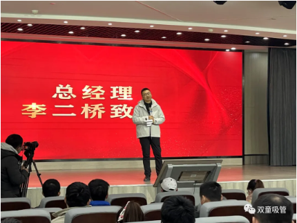 大會(huì)伊始,“雙童”總經(jīng)理李二橋就向在場每一位辛勤奮斗的員工們表示感謝,并提出了“雙童”后續(xù)的工作規(guī)劃,為員工爭取了更多權(quán)益與巨額獎(jiǎng)勵(lì),給予了在場員工巨大的想象空間。