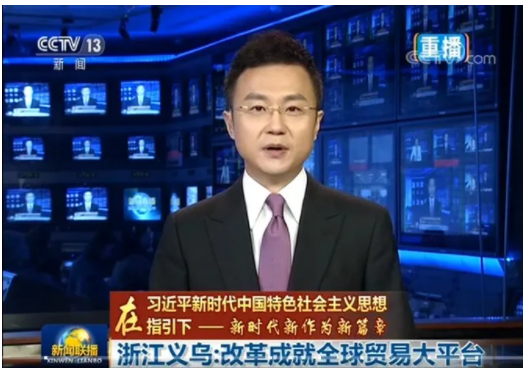 2019年12月7日,中央電視臺《新聞聯(lián)播》頭條以《【在習近平新時代中國特色社會主義思想指引下——新時代 新作為 新篇章】浙江義烏:改革成就全球貿易大平臺》為標題,聚焦義烏改革發(fā)展。