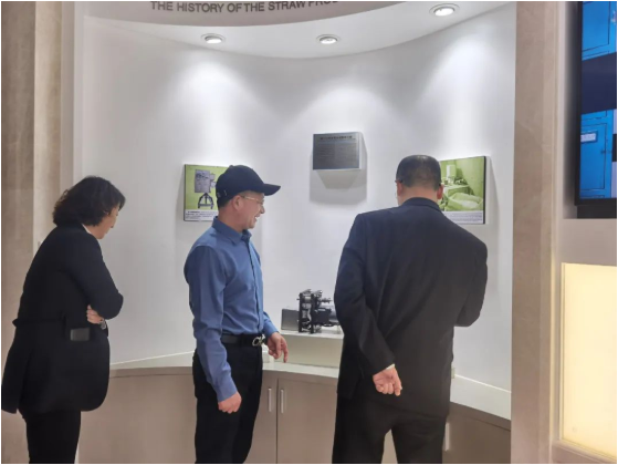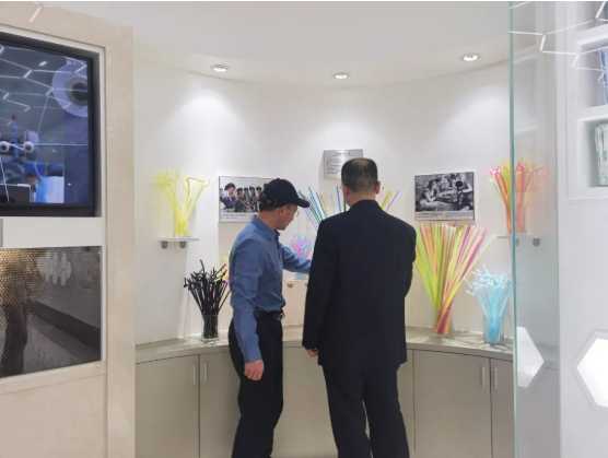 在“雙童”董事長樓仲平的陪同下,許惠春副院長一行來到了中國吸管博物館,一起參觀了吸管產(chǎn)品發(fā)展歷史展示區(qū)、吸管生產(chǎn)技術(shù)展示區(qū)、吸管產(chǎn)品形態(tài)展示區(qū)等各類吸管的展示區(qū)域,同時,調(diào)研組也了解了“雙童”的技術(shù)研發(fā)創(chuàng)新和代表性專利。
