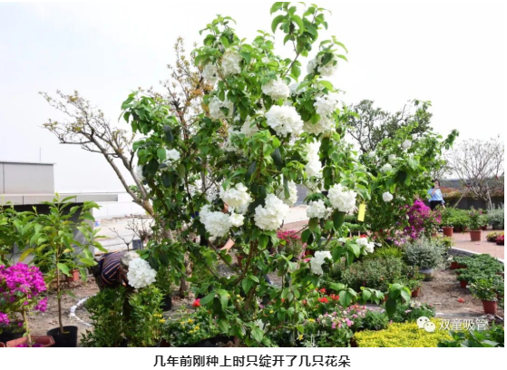 雙童:屋頂花園的繡球花開正當(dāng)時!一簇簇潔白花朵、連成一片猶如美麗的云彩!