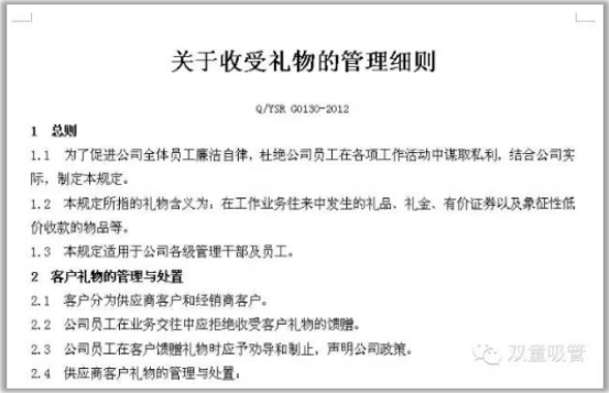 《關(guān)于收受禮物的管理細(xì)則》部分內(nèi)容