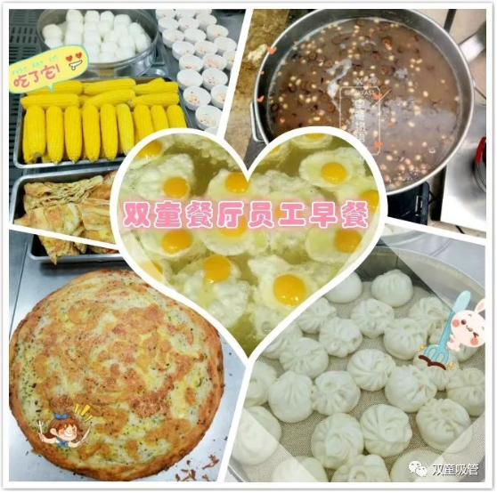 為了保證員工能吃到豐盛美味的早餐,餐飲團隊需要在前一晚提前準備好食材,在凌晨三四點就開始忙碌的工作,蒸包子、煎餅、炸油條、煮雞蛋、粥、豆?jié){......他們負責的工作雖然是“雙童”人一天中不可或缺的環(huán)節(jié),但是恰恰“燈下黑”,他們的付出卻往往最容易被忽略。