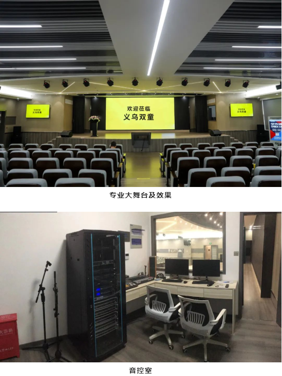 會場擁有超大LED彩屏、提詞機、四臺同步顯示超大電視、全覆蓋中央空調、標準音控室、化妝間以及貴賓休息室、吸煙室等。