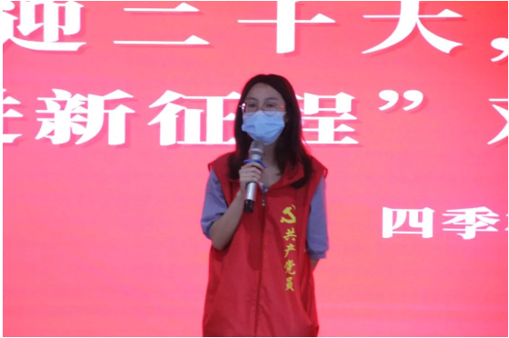 “喜迎二十大,永遠(yuǎn)跟黨走,奮戰(zhàn)新征程”,正值二十大即將召開(kāi)之際。在電影開(kāi)始前,四季社區(qū)黨委吳燕委員通過(guò)樸實(shí)的語(yǔ)言,為基層員工們分享了黨史知識(shí),也為員工們展示了共產(chǎn)黨人不忘初心、砥礪奮進(jìn)的先進(jìn)事跡。
