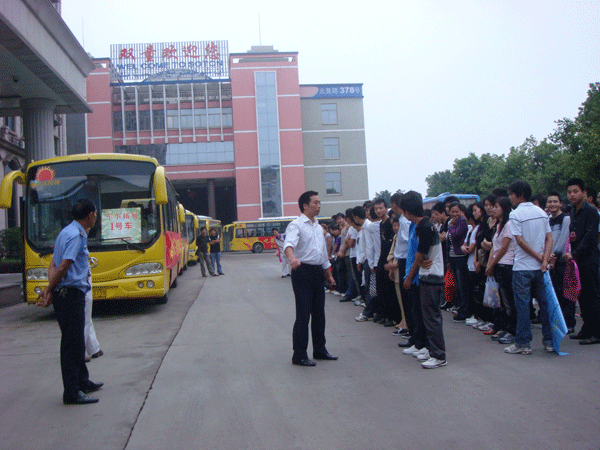 上圖:全體職工整裝待發(fā)赴橫店革命戰(zhàn)爭(zhēng)博覽城拓展旅游