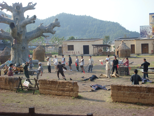 上圖:《鬼子進(jìn)村》大型真人槍戰(zhàn)演出現(xiàn)場(chǎng)