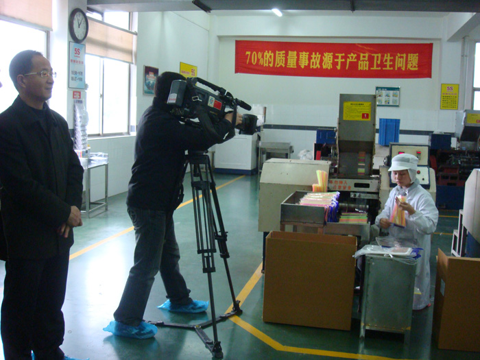 上圖:《中國財(cái)經(jīng)報(bào)道》欄目組記者到我司吸管生產(chǎn)車間采訪拍報(bào)