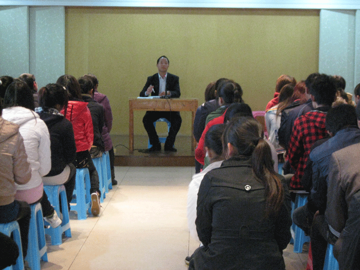 上圖:董事長在新員工培訓(xùn)會上致歡迎詞