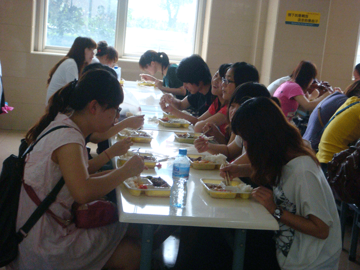 上圖:全體學(xué)生排隊(duì)有序參觀公司職工宿舍