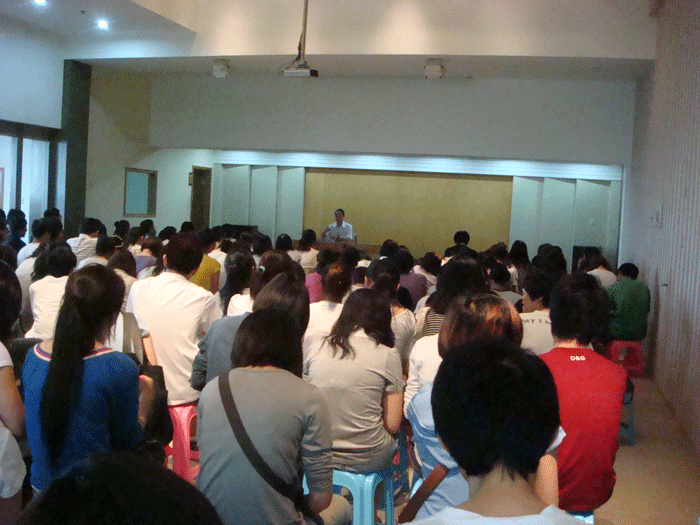 上圖:董事長(zhǎng)樓仲平應(yīng)邀在多功能廳為學(xué)生上課