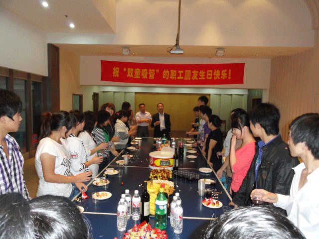 為了營(yíng)造和睦,更好的關(guān)愛(ài)員工,塑造良好的“雙童”團(tuán)隊(duì)文化氛圍,積極發(fā)揮“雙童工會(huì)”的作用,增強(qiáng)職工凝聚力和向心力,增進(jìn)職工之間的溝通和友誼,經(jīng)公司工會(huì)和總經(jīng)辦組織各部門通過(guò)會(huì)議討論決定:從2010年9月起實(shí)施按月組織職工生日聚會(huì)活動(dòng)。