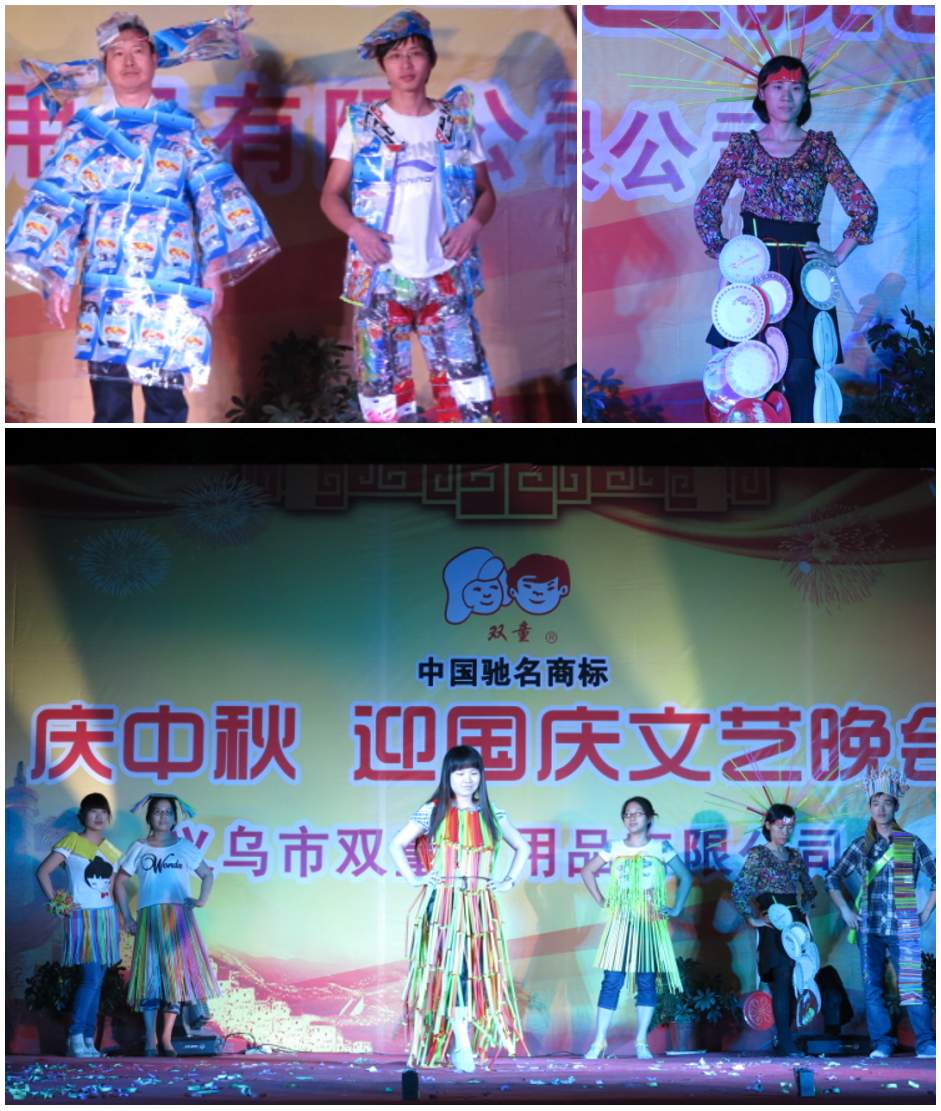 瞧,外銷部為大家?guī)淼膭?chuàng)意時裝表演,衣服不租不借,都是本部門人員精心設(shè)計(jì),吸管制作衣服、裙子、包裝袋做的馬甲、褲子,讓在場的觀眾大跌眼鏡、贊嘆不已!