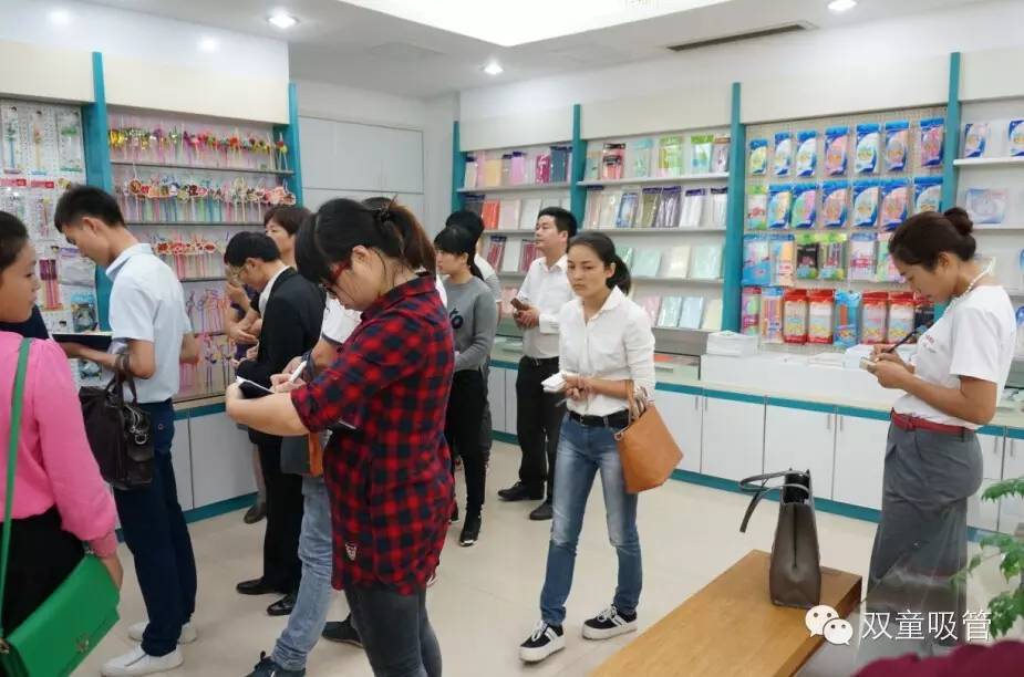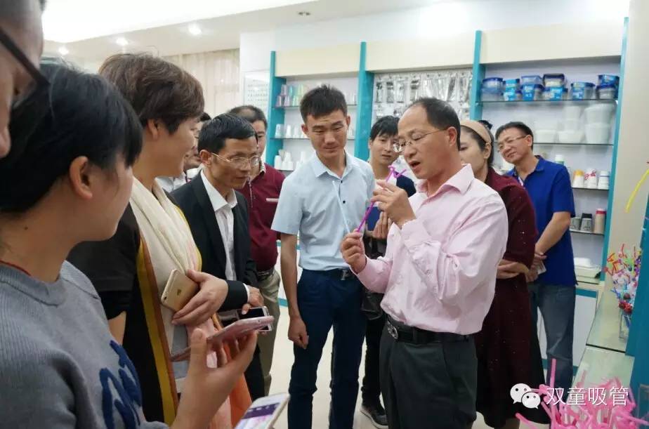 當(dāng)家人樓總領(lǐng)著各位老總們走遍雙童的各個(gè)“景點(diǎn)”,希望可以讓大家能夠看到最全面真實(shí)的雙童吸管。這不,樓總連每根吸管的創(chuàng)意點(diǎn)都講得清清楚楚的!而這些創(chuàng)意背后的故事和經(jīng)營(yíng)理念,則是被各位老總都記在了他們的本子上,真是好學(xué)呀!