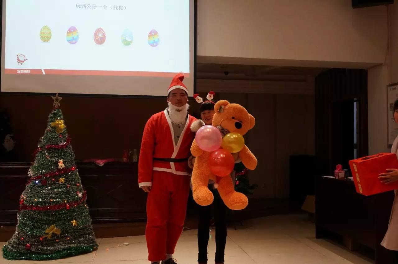 而最最激動(dòng)人心的,莫過于我們的抽獎(jiǎng)環(huán)節(jié)!只要被抽中名字的觀眾,都可以上臺(tái)“砸彩蛋”,彩蛋對應(yīng)的獎(jiǎng)品各式各樣,有大有小,具體就要看你的運(yùn)氣了哦!快看,有位女員工獲得了我們的名牌護(hù)膚品套裝, 真是讓吸管妞羨慕嫉妒恨!而這位幸福的媽咪則是獲得了我們的小熊娃娃玩偶,讓她開心地尖叫起來,哈哈,給孩子的圣誕禮物就有啦!