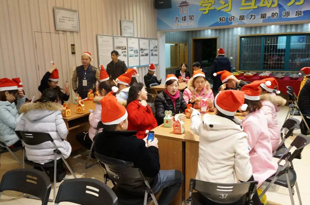 為了慶祝圣誕節(jié)的到來,我們特地舉辦了這場節(jié)日氛圍濃厚的圣誕party哦!快看,每個(gè)人頭上都有一頂可愛的圣誕帽子,乍一看,還以為是一群圣誕老人在聚餐呢!九樓閣的熱鬧也吸引了不少孩子們加入,看到我們的“圣誕老人”更是纏著他不肯放!