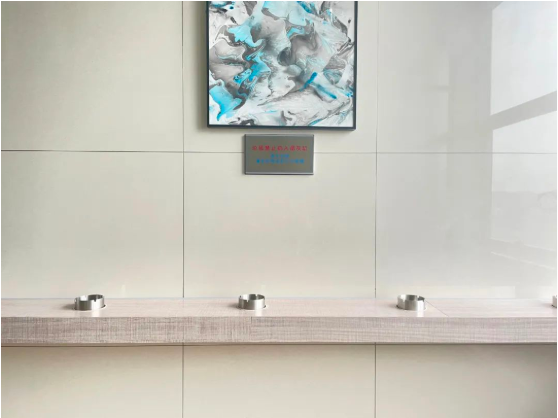 吸煙房內(nèi)干凈亮潔,貼有文明標語引導(dǎo)愛護環(huán)境