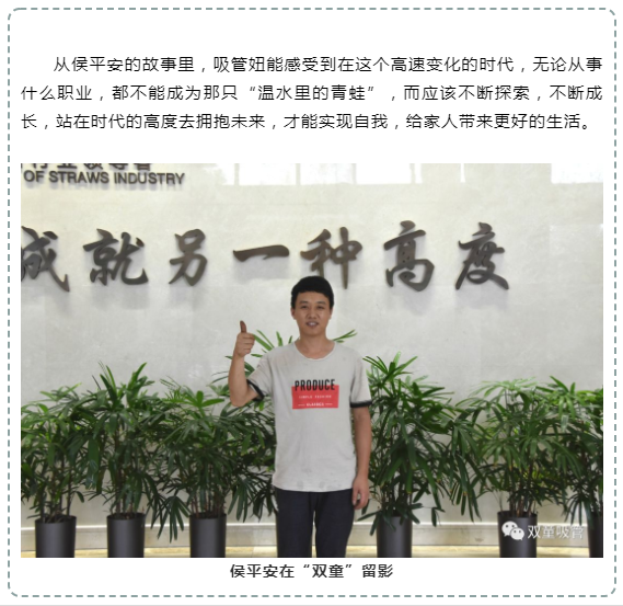 最后,侯平安也流露出自己的心聲:“公司為我們提供住所,解決了夫妻倆兩地分居的問(wèn)題,讓我能把孩子帶在身邊,上班也更安心了。如果沒(méi)有在‘雙童’學(xué)到這門(mén)技術(shù),不知道自己現(xiàn)在會(huì)在哪里,‘雙童’給我們提供了很好的平臺(tái),只要你肯在這里踏實(shí)努力的干,肯定能在這里有所發(fā)展!”