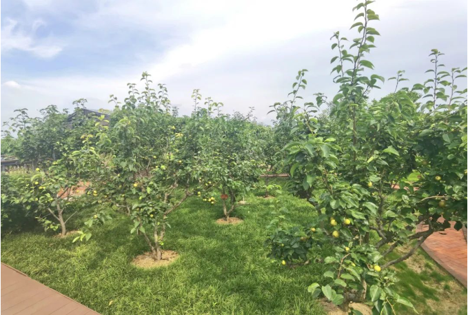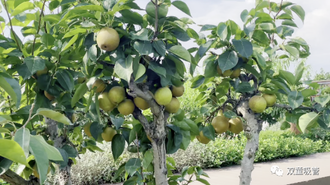 在“雙童”新廠區(qū)5000平米的“空中果園”里,200多棵的果樹(shù)正在瘋狂成長(zhǎng),漸漸開(kāi)始結(jié)果啦!看這邊的梨樹(shù)林,春天時(shí)梨花開(kāi)滿了枝丫,果不其然現(xiàn)在就已經(jīng)果實(shí)累累,每棵樹(shù)都結(jié)了好幾十顆梨子!