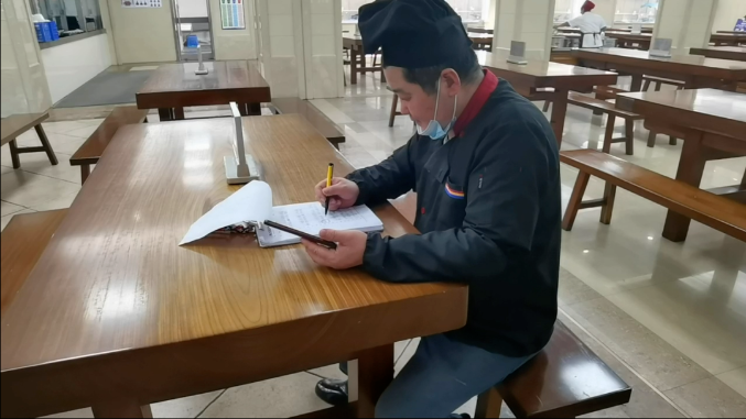 食堂師傅正在對(duì)驗(yàn)收菜品進(jìn)行登記
