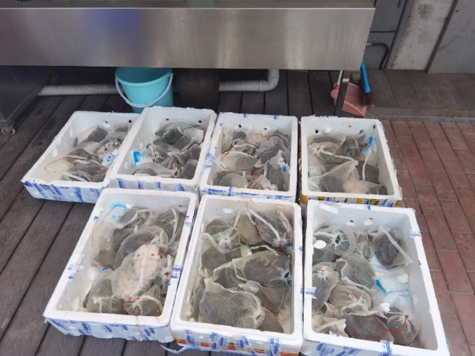 抓住他們真是費(fèi)了不少勁!在經(jīng)過后勤小姐姐們的細(xì)心消毒后,終于可以投放啦,看著一袋又一袋塑料網(wǎng)被解開,小甲魚們紛紛扎入池塘當(dāng)中。吸管妞已經(jīng)默默期盼著來年收獲一大堆甲魚蛋啦~~