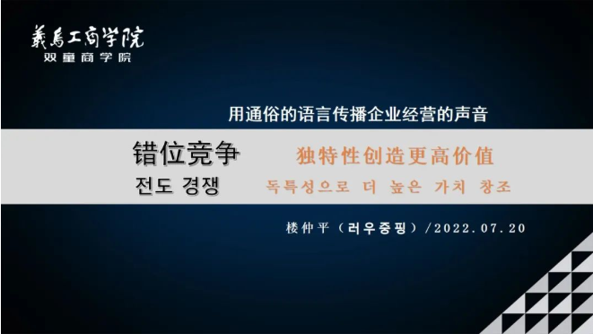 為了讓韓國學(xué)員,能夠充分領(lǐng)會到相關(guān)理念。樓仲平舍棄了大量的學(xué)術(shù)性知識要點,通過結(jié)合實際行業(yè)分析現(xiàn)狀、研習(xí)方案,為同學(xué)們打開了市場的錯位競爭的全新思路。