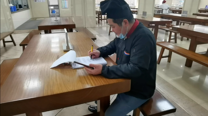 食堂師傅正在對驗(yàn)收回來的菜品進(jìn)行登記