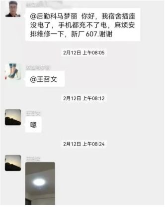 后勤團隊實時在宿舍溝通群內(nèi)