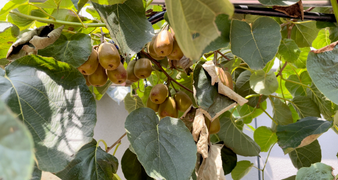 成片的獼猴桃掛在藤蔓上