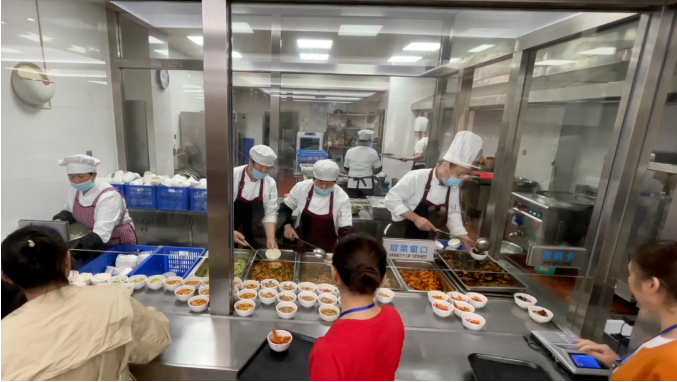 而衛(wèi)生方面也有專門的基礎(chǔ)檢查小組進行每月4次的考核,以考評打分平均分為準。這就有利于后勤餐飲團隊自身主動維護好食堂的衛(wèi)生,給大家整潔有序的用餐環(huán)境。