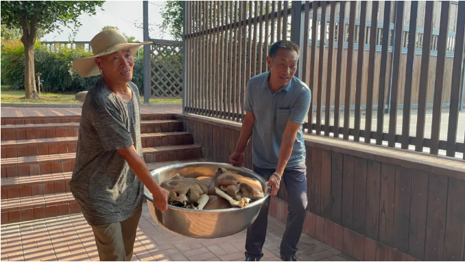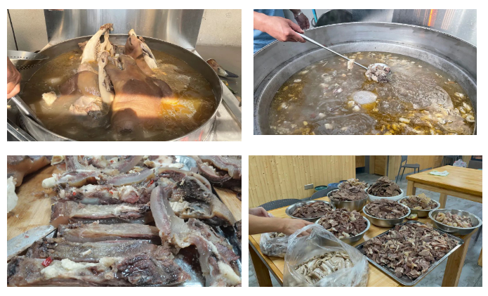 這回聚餐餐桌上的主角是——兩只牛頭!這可足足有上百斤,聽(tīng)起來(lái)是不是很過(guò)癮呢!