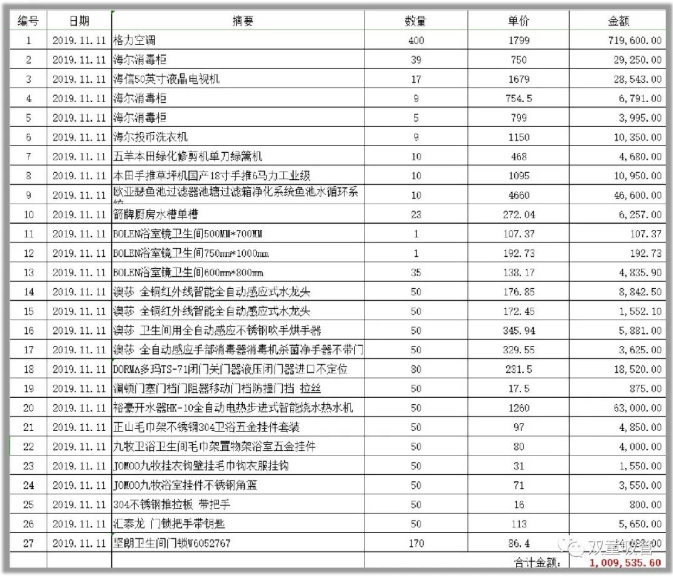 在后續(xù)調(diào)查跟進(jìn)的過(guò)程中,吸管妞發(fā)現(xiàn)這五臺(tái)洗衣機(jī),也算是“雙童”的“老員工”啦!2019年的雙十一,“雙童”董事長(zhǎng)樓仲平聯(lián)合團(tuán)隊(duì)一起購(gòu)買了400臺(tái)格力空調(diào)、39臺(tái)海爾消毒柜、80臺(tái)進(jìn)口閉門器、門鎖170把、9臺(tái)投幣洗衣機(jī)、17臺(tái)各型號(hào)彩電、9臺(tái)洗衣機(jī)..... 為二期廠房增添設(shè)備,所有設(shè)備都采用高品質(zhì)的品牌,直接將一百多萬(wàn)貢獻(xiàn)給了天貓!