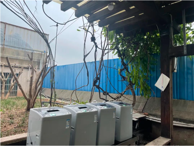 除了二期廠區(qū)之外,2022年6月,“雙童”董事長(zhǎng)樓仲平在改造一期廠區(qū)九樓的小花園時(shí),發(fā)現(xiàn)原有的洗衣機(jī)已經(jīng)有些破舊了。為此,樓仲平專門讓公司騰出了一個(gè)荒廢的小房間,經(jīng)過(guò)一番加班加點(diǎn)的裝修改造,一間精致整潔的洗衣房就在“雙童”一期廠區(qū)橫空出世啦!