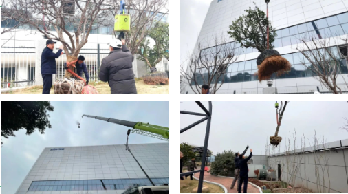 其實(shí)啊,主要是因?yàn)橘徺I的果樹都是重量級“嘉賓”,所以“雙童”都是通過大吊機(jī)將這些果樹運(yùn)送上空中生態(tài)園的!我們的當(dāng)家人樓總更是親自從旁指揮,護(hù)送大樹成功上樓!