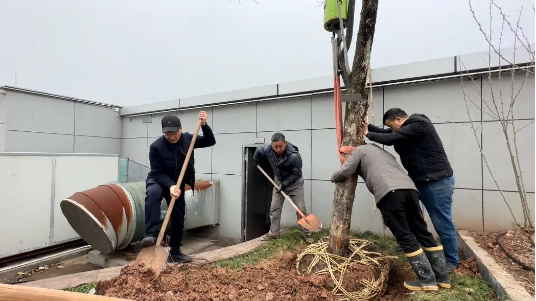 在空中花園里,大家嘿呦嘿呦的正在賣力地栽樹。俗話說得好,團(tuán)結(jié)就是力量,大家一起培土、踩實(shí)、澆水,每道工序都一絲不茍,每個流程認(rèn)真細(xì)致!