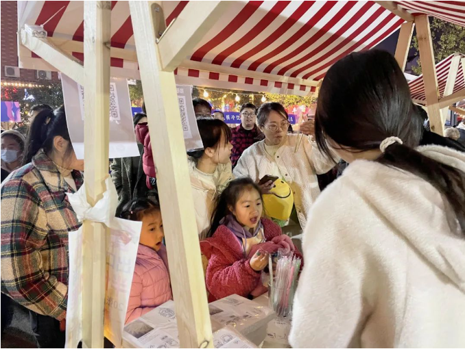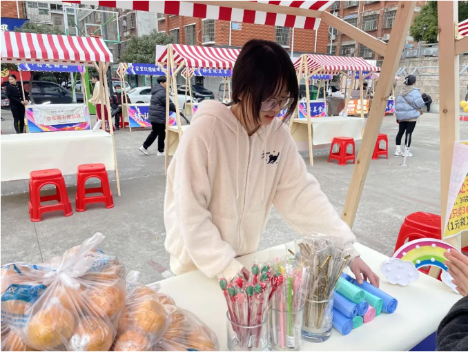 ,吸管妞可是絲毫不敢大意,做足了功課。集市開始前,吸管妞就和“雙童”各個(gè)創(chuàng)業(yè)體反復(fù)商議確定售賣的產(chǎn)品,大家分工明確,團(tuán)結(jié)協(xié)作,干勁十足,呈現(xiàn)出一派熱火朝天的景象。