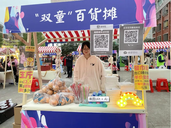 瞧!“雙童”的百貨攤上是不是有不少好東西,不僅有“雙童”遠(yuǎn)近聞名的吸管、垃圾袋和紙巾,還有“雙童”員工家因雨水問題導(dǎo)致滯銷的胡柚!