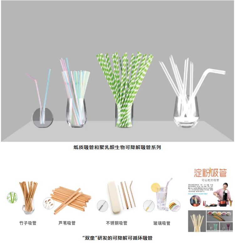 此后,“雙童”更是將“讓一次性產(chǎn)品告別白色污染”作為企業(yè)使命,并堅定往可降解可循環(huán)的方向推進,相繼開發(fā)出聚乳酸吸管、紙質(zhì)吸管、竹子吸管、木質(zhì)吸管、蘆葦吸管、不銹鋼吸管、玻璃吸管、可食用淀粉吸管等環(huán)保產(chǎn)品,推動環(huán)境友好型產(chǎn)品逐漸替代傳統(tǒng)的塑料吸管。