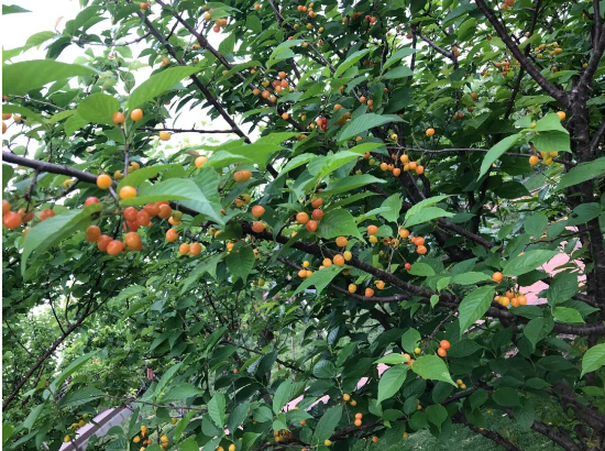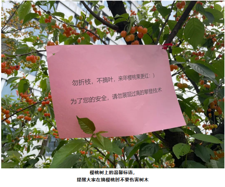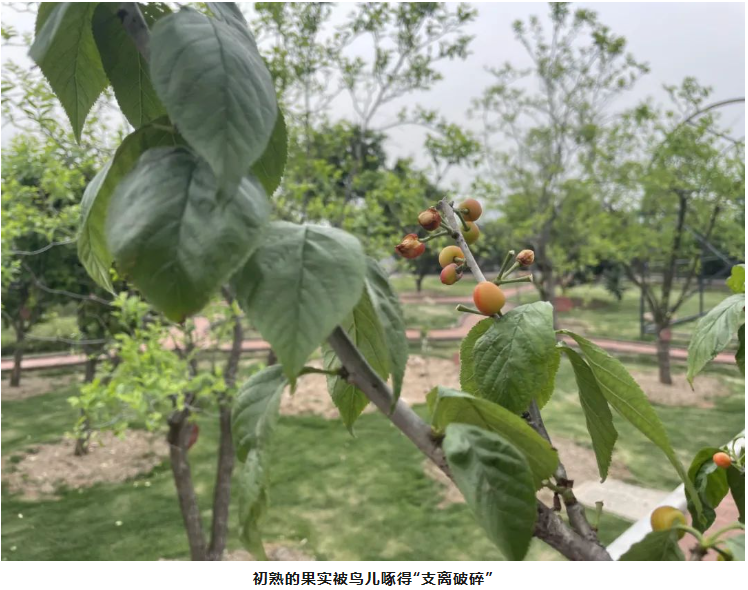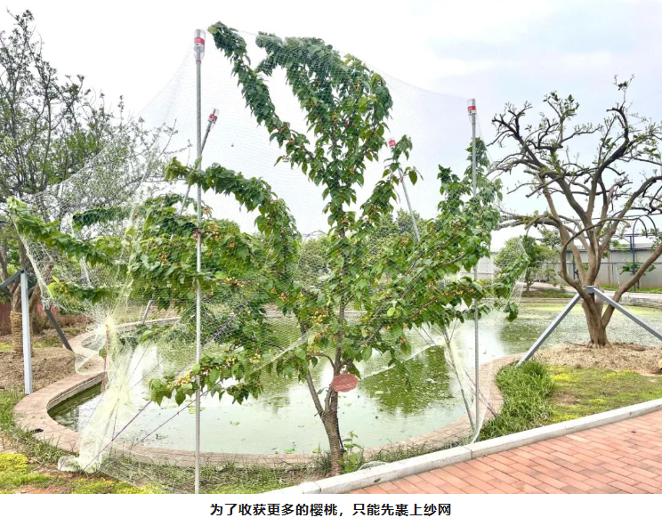 吸管妞可是眼看著這些櫻桃由青轉(zhuǎn)黃,由黃轉(zhuǎn)橙,最后變成紅色的呢!由于光照條件不同的關(guān)系,現(xiàn)在不少果實(shí)還是橙色的。只是沒想到,由于櫻桃太過于可口,不少鳥兒都爭(zhēng)先啄食。為了讓更多果實(shí)留存下來,讓員工和遠(yuǎn)道而來的客人們可以品嘗到新鮮美味的櫻桃,園丁叔叔給還未完全成熟的櫻桃樹裹上了紗網(wǎng)。