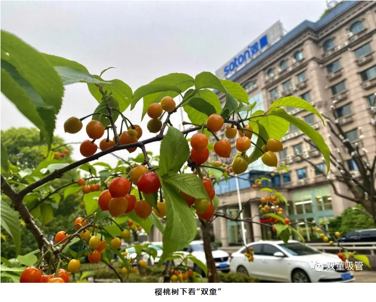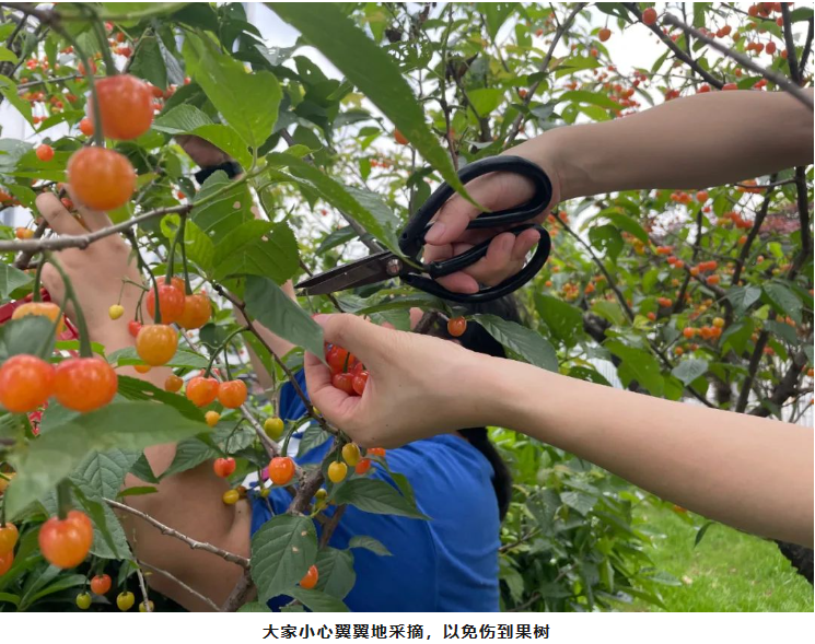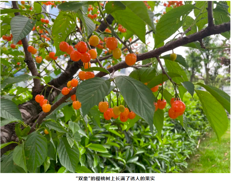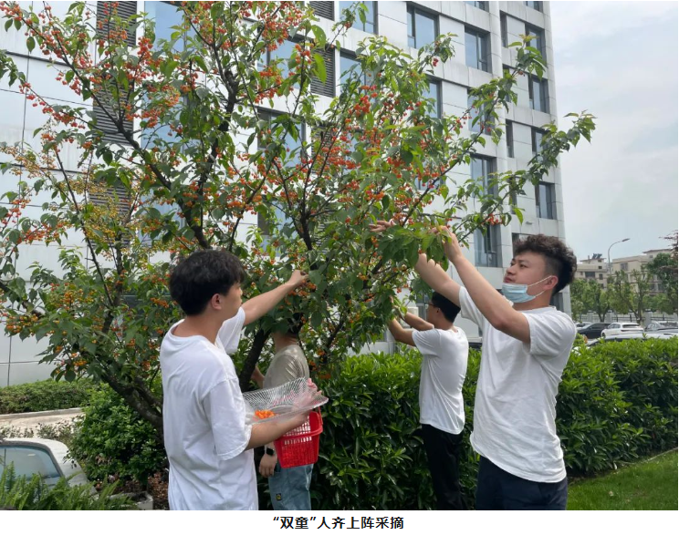 在“雙童”,水果都是員工共享,等到櫻桃成熟了,甜蜜的果實(shí)就要大家一起分享。挑選一個(gè)晴朗的日子,細(xì)心地把果實(shí)采摘下來,不僅是品嘗美味,也增進(jìn)了同事間的情誼。
