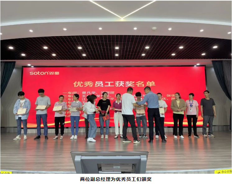 當頒獎音樂響起時,“優(yōu)秀員工”們在陣陣掌聲中移步舞臺中央,副總經(jīng)理李秀前、毛斌為其頒發(fā)榮譽證書,這也是公司對一線員工的重視及肯定!當聚光燈身上的那一刻,相信對每一位“優(yōu)秀員工”來講都意義非凡,對全體員工來講也是莫大的鼓舞和激勵!